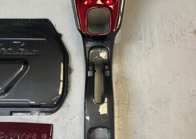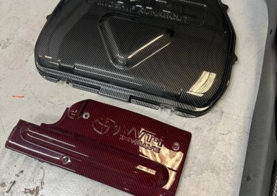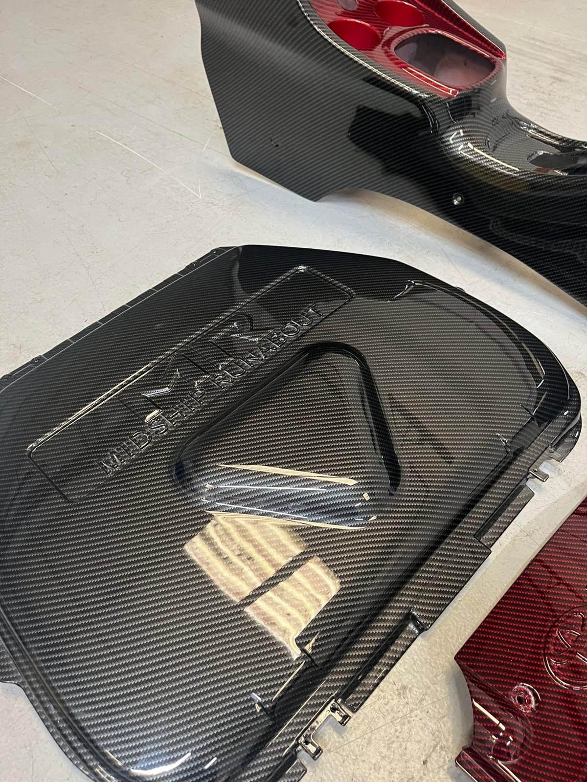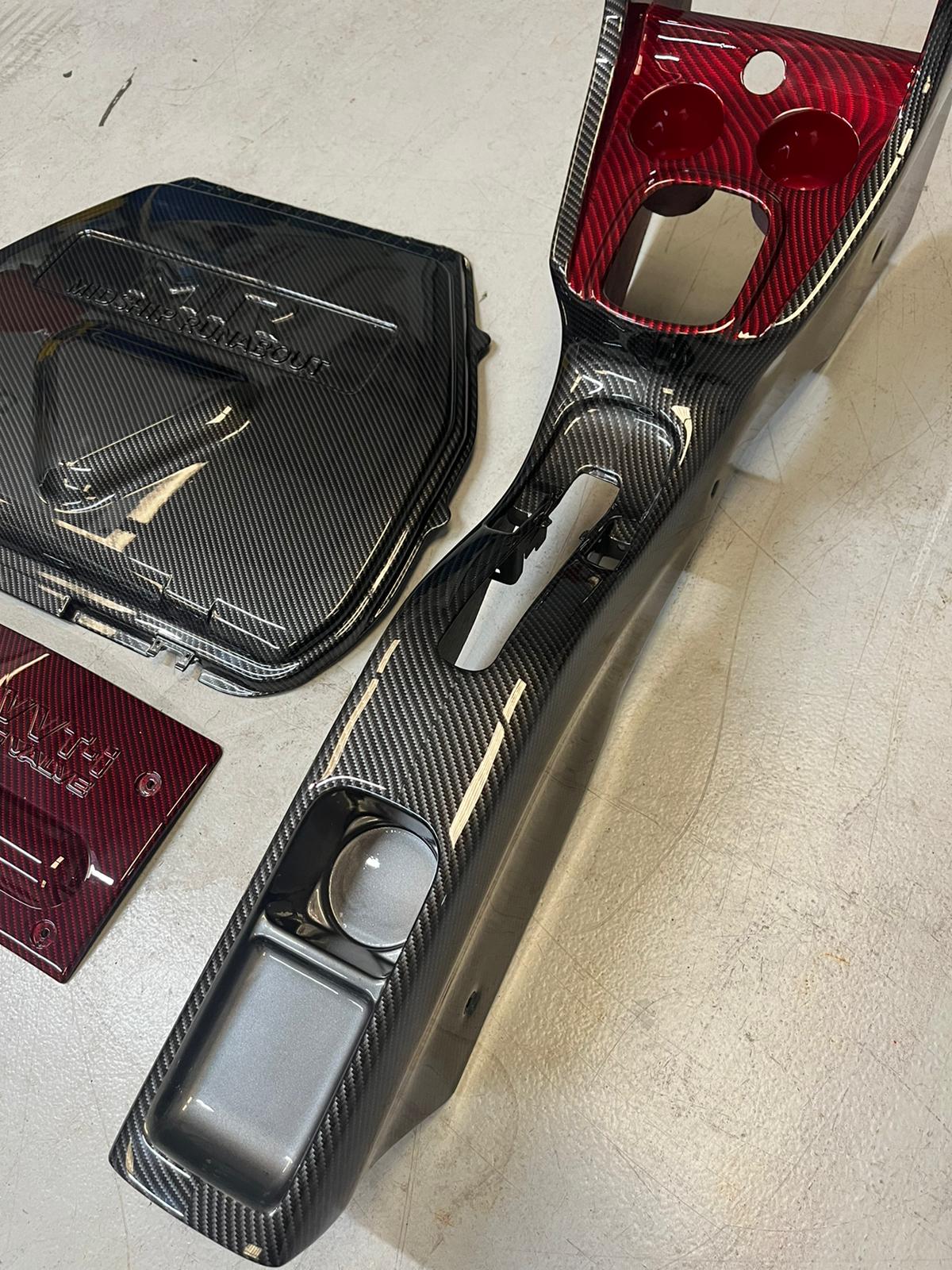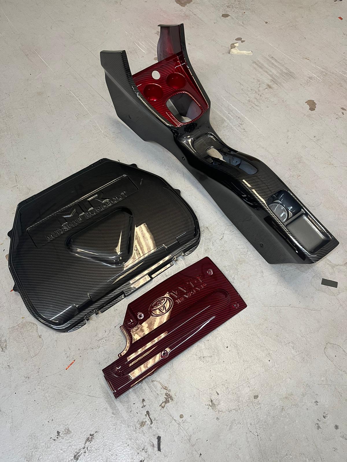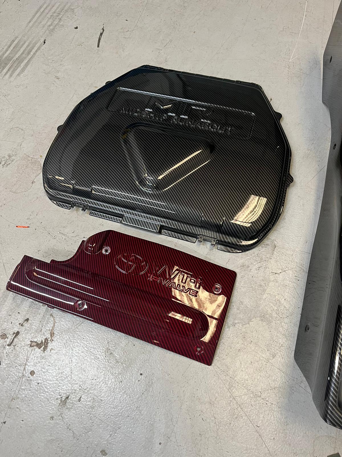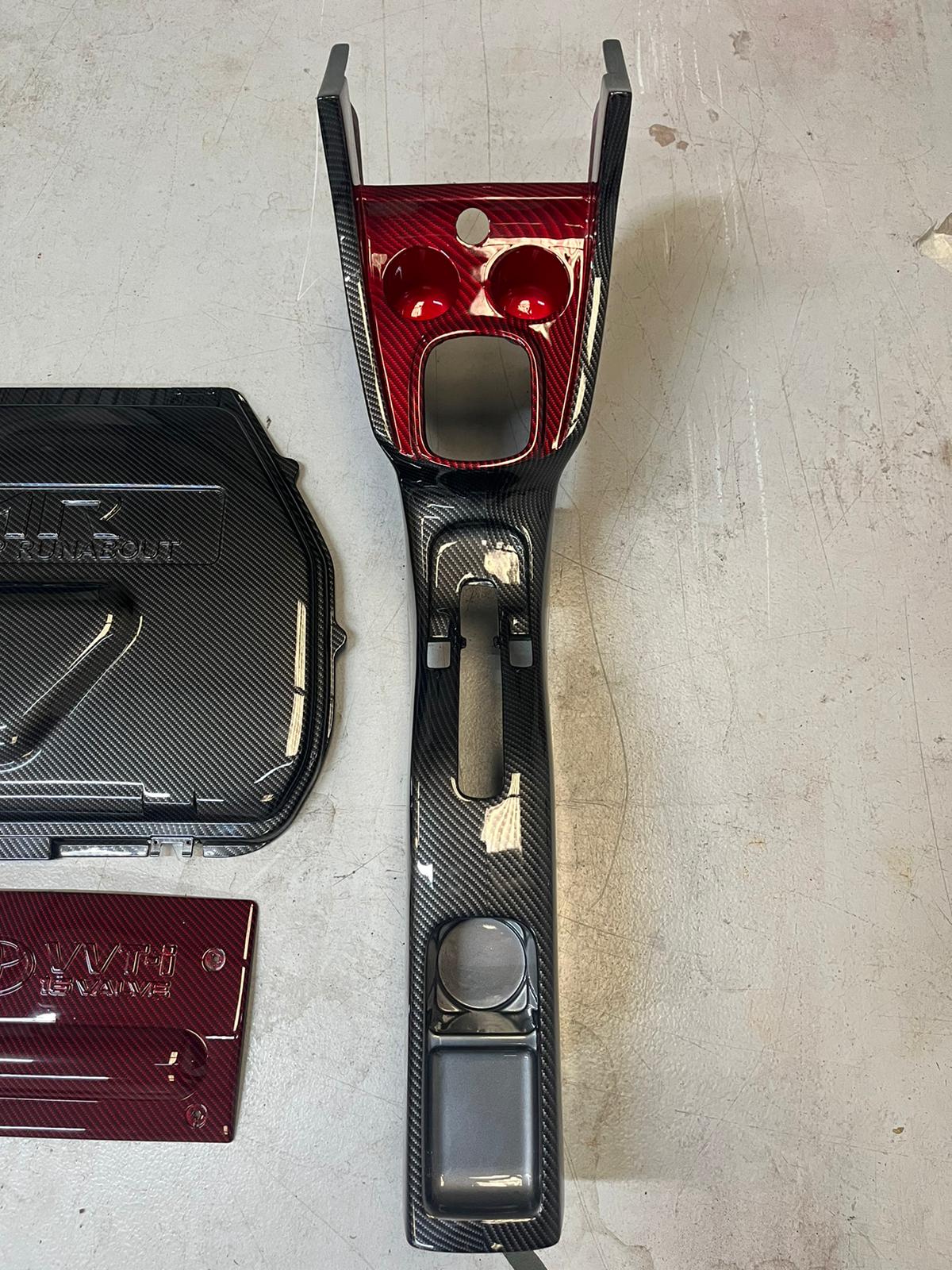 Engine Plastics and Interior Parts Hydro Dipped In Red and Black Carbon Fibre