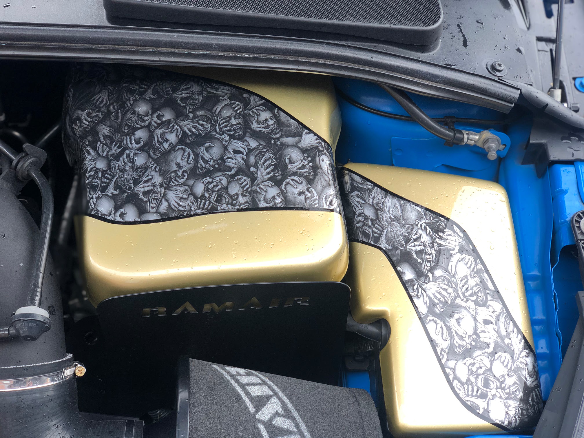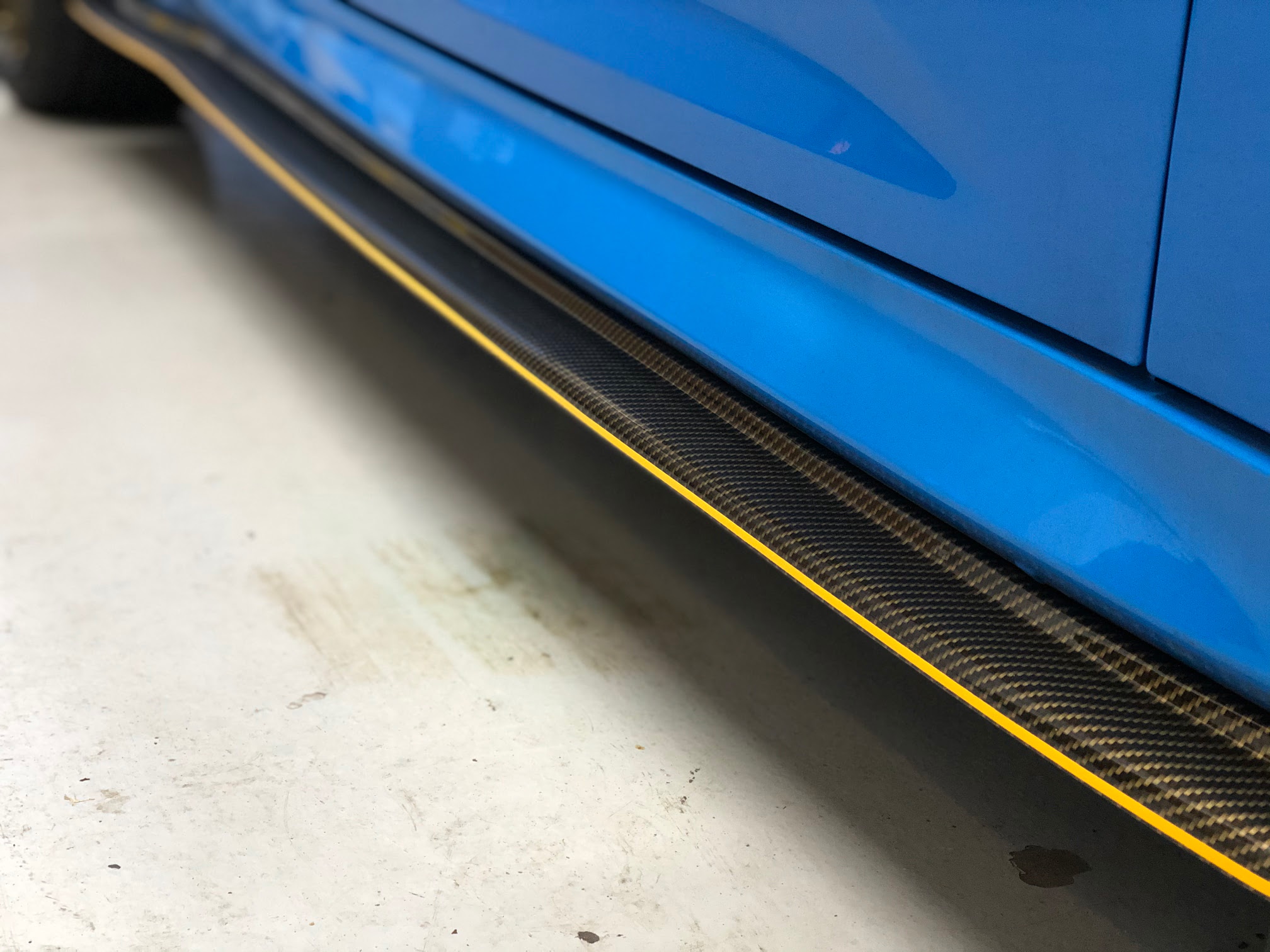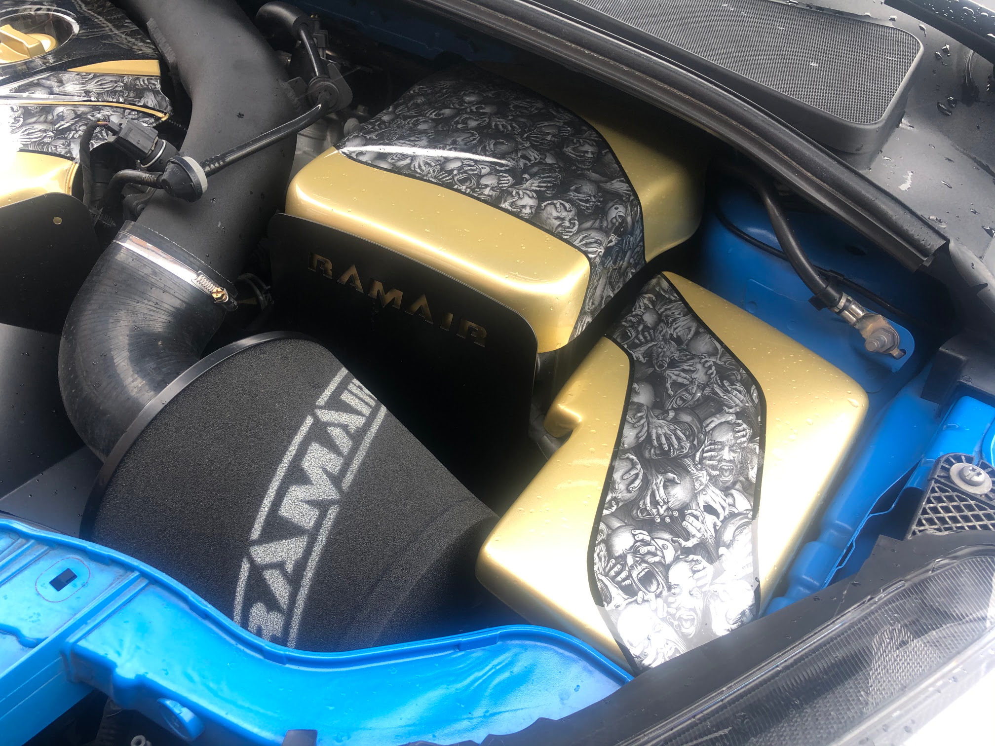 The bodykit and alloy wheels were hydro dipped in gold carbon fibre. The interior was hydro dipped in dark carbon fibre. The engine bay was a custom design created by Vital owner Adam Cunningham.