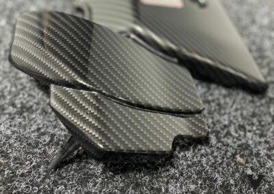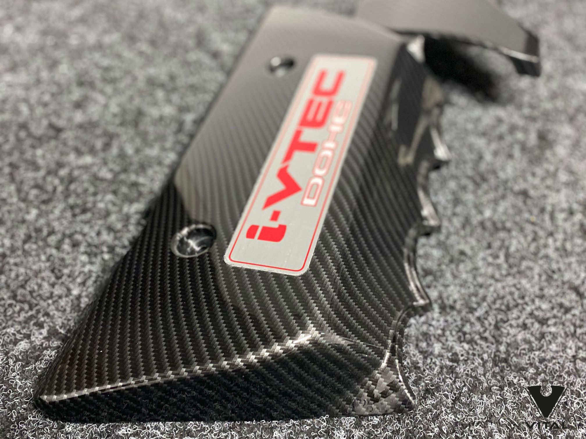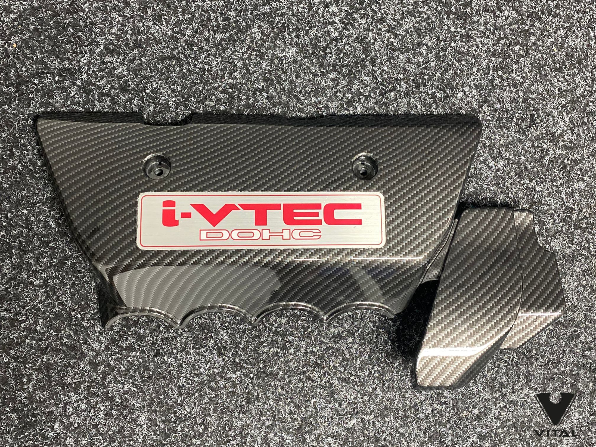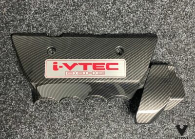 For this Civic Type-R build, the customer wanted a spark plug cover that tied in with the car’s performance look while adding a subtle custom twist. We hydro dipped the full panel in our carbon fibre weave, keeping the pattern tight and consistent across the long, flat surface and the raised bolt points.