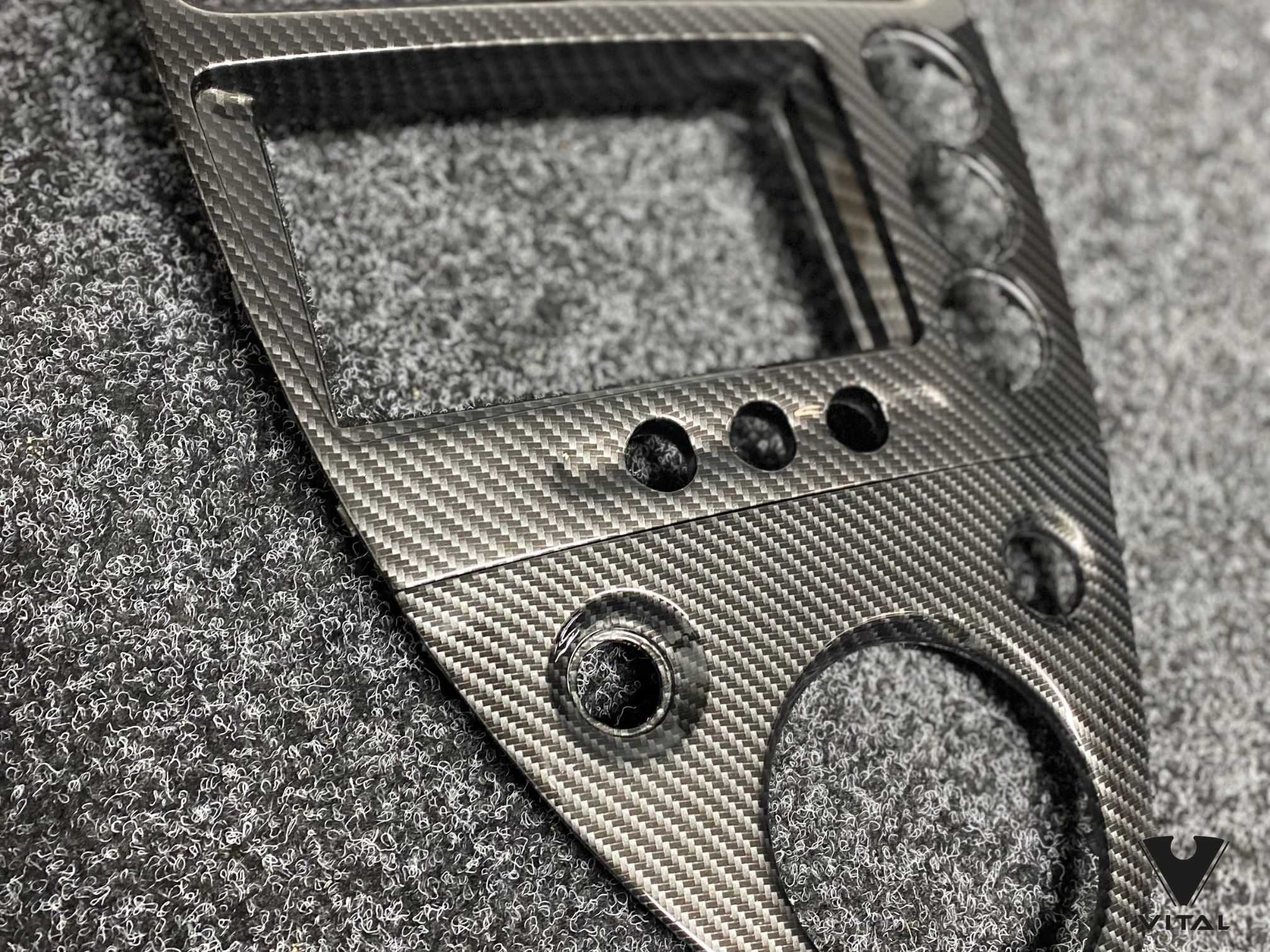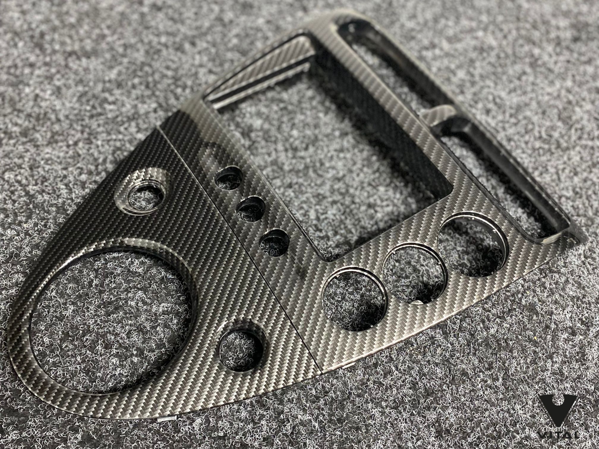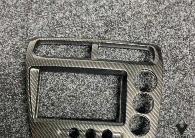 For this project we refinished the Honda Civic Type-R stereo surround in a clean carbon fibre hydro dip, giving the interior a sharper, more modern look. The surround is a single moulded piece with multiple cut-outs for controls and vents, so the prep and dipping process had to be precise to keep the weave running consistently across all the angles and openings.