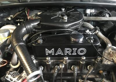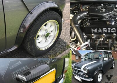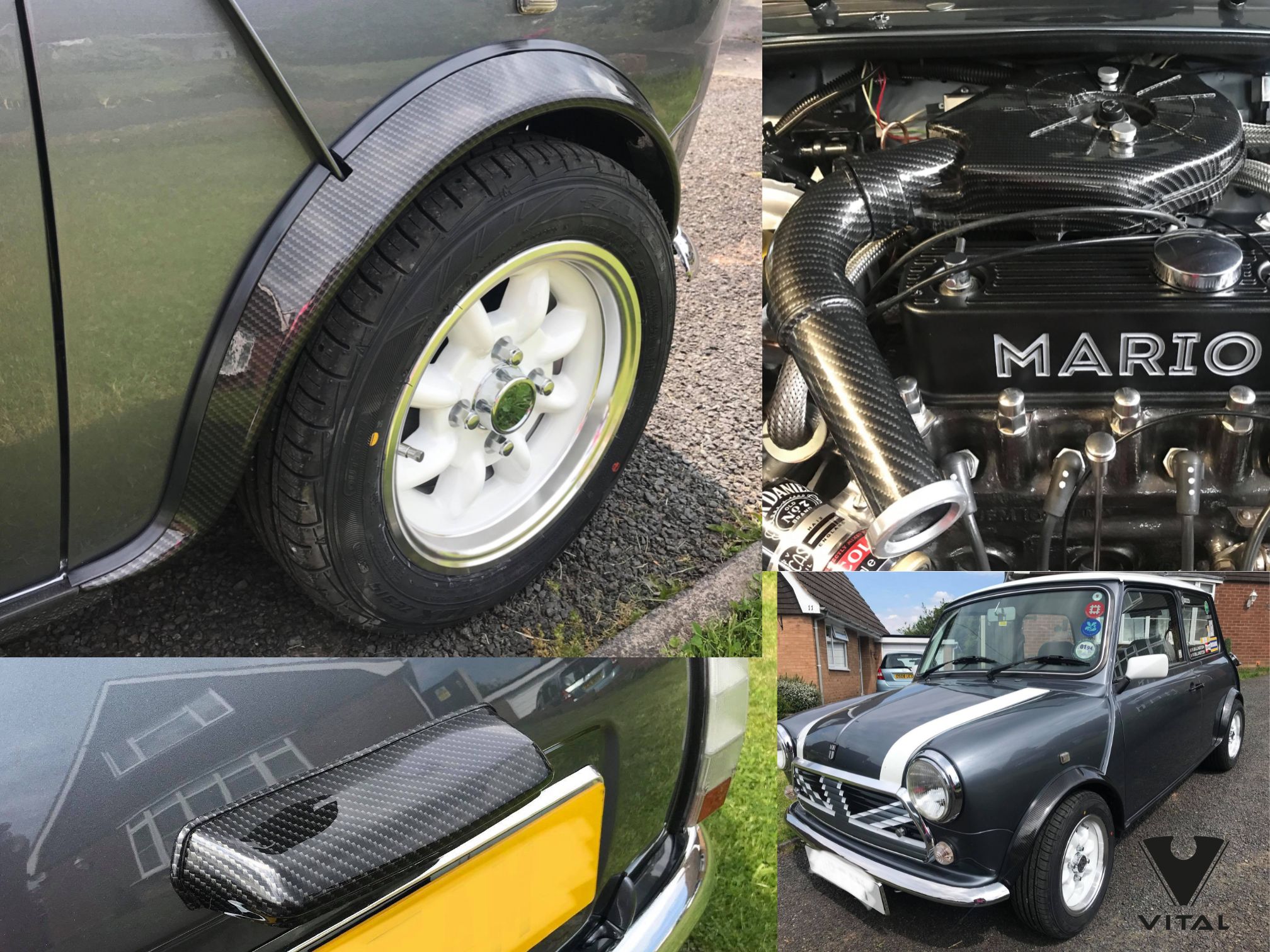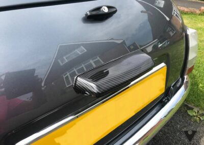 This classic Mini Cooper project involved giving several engine bay plastics and exterior arch trims a clean carbon fibre upgrade. The owner wanted a modern, motorsport-inspired touch without losing the charm of the original car, so we prepped each part and hydro dipped them in a tight, glossy carbon weave.