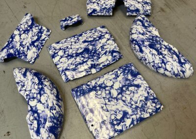 These mobility panels were given a bold, completely custom finish using a blue-and-white flame pattern. Each panel was prepped, dipped and clear-coated to achieve a clean, high-contrast design that instantly lifts the overall look of the chair.